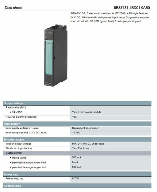 1 module new 2015 6es7 131-4bd01-0ab0 siemens simatic et 20...