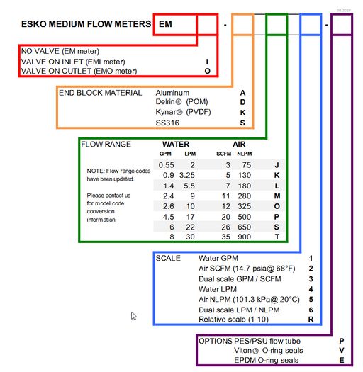 New esko em-ssr-pv flow meter 0-10 scale 6 usgph 1/2" npt v...