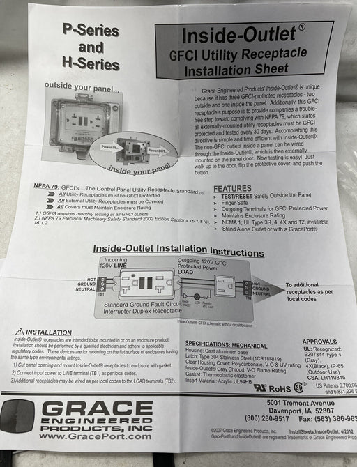 New grace port p-p2-k3rf0 parallel port panel interface w/ ...