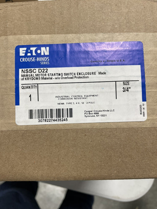 New nssc d22 eaton crouse hinds manual motor starter krydon...