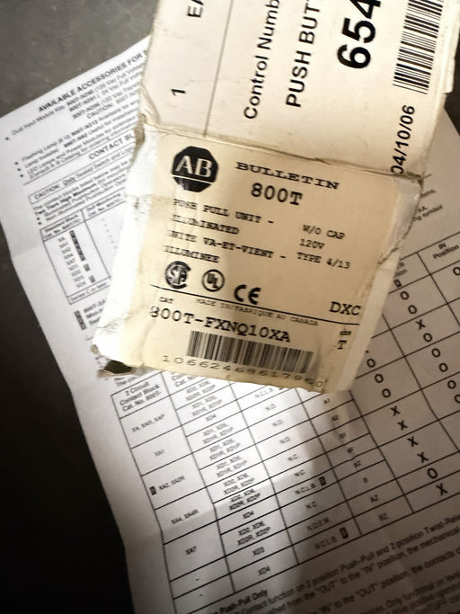 Allen bradley illuminated push button 800t-fxnq10xa 800tfxn...