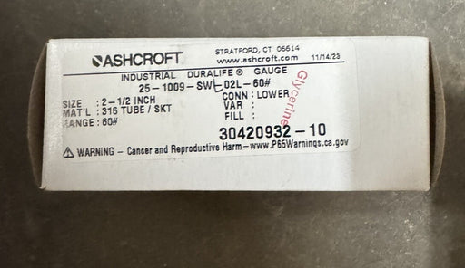 Ashcroft 25 1009swl02l60# 251009swl02l60 (new in box) 60 p...